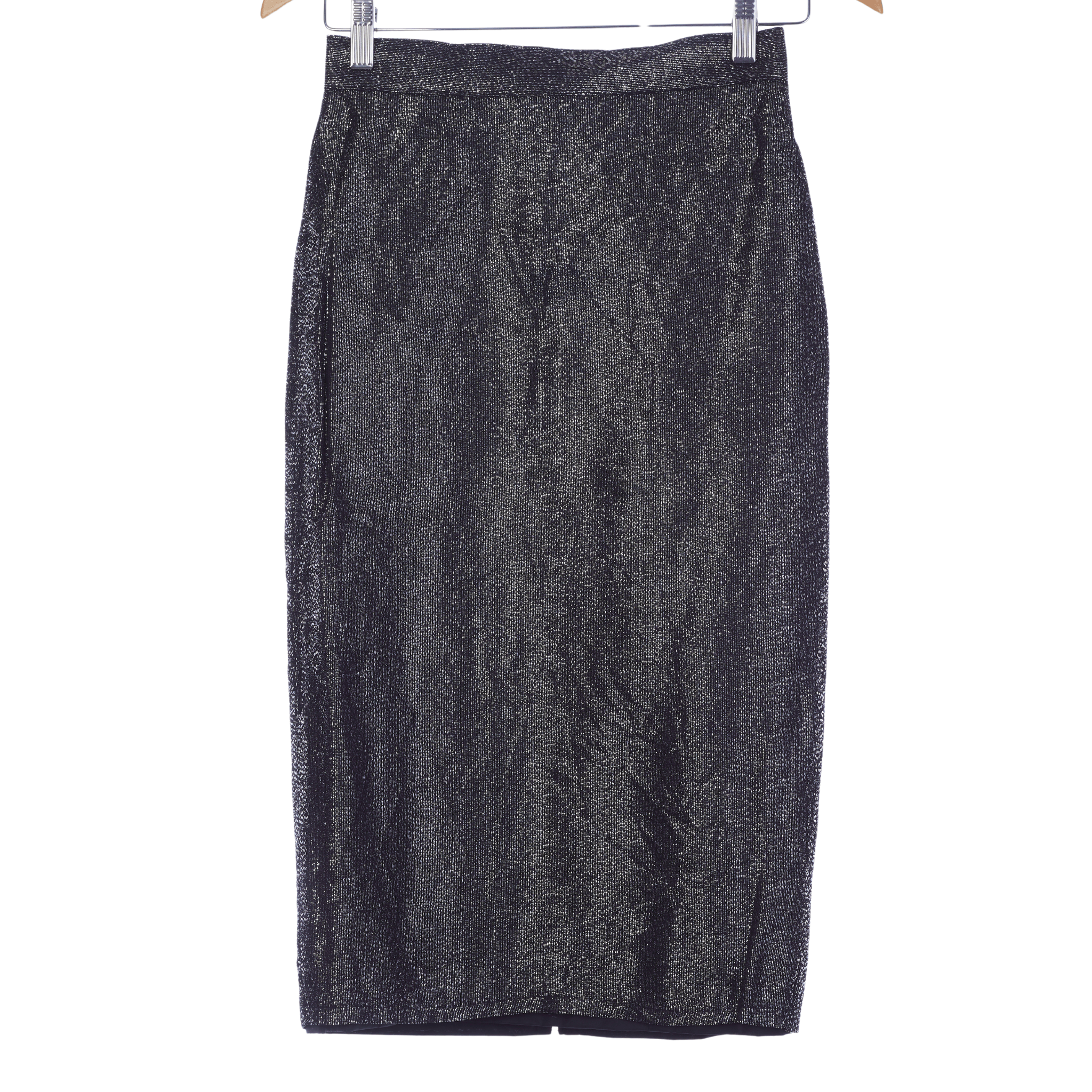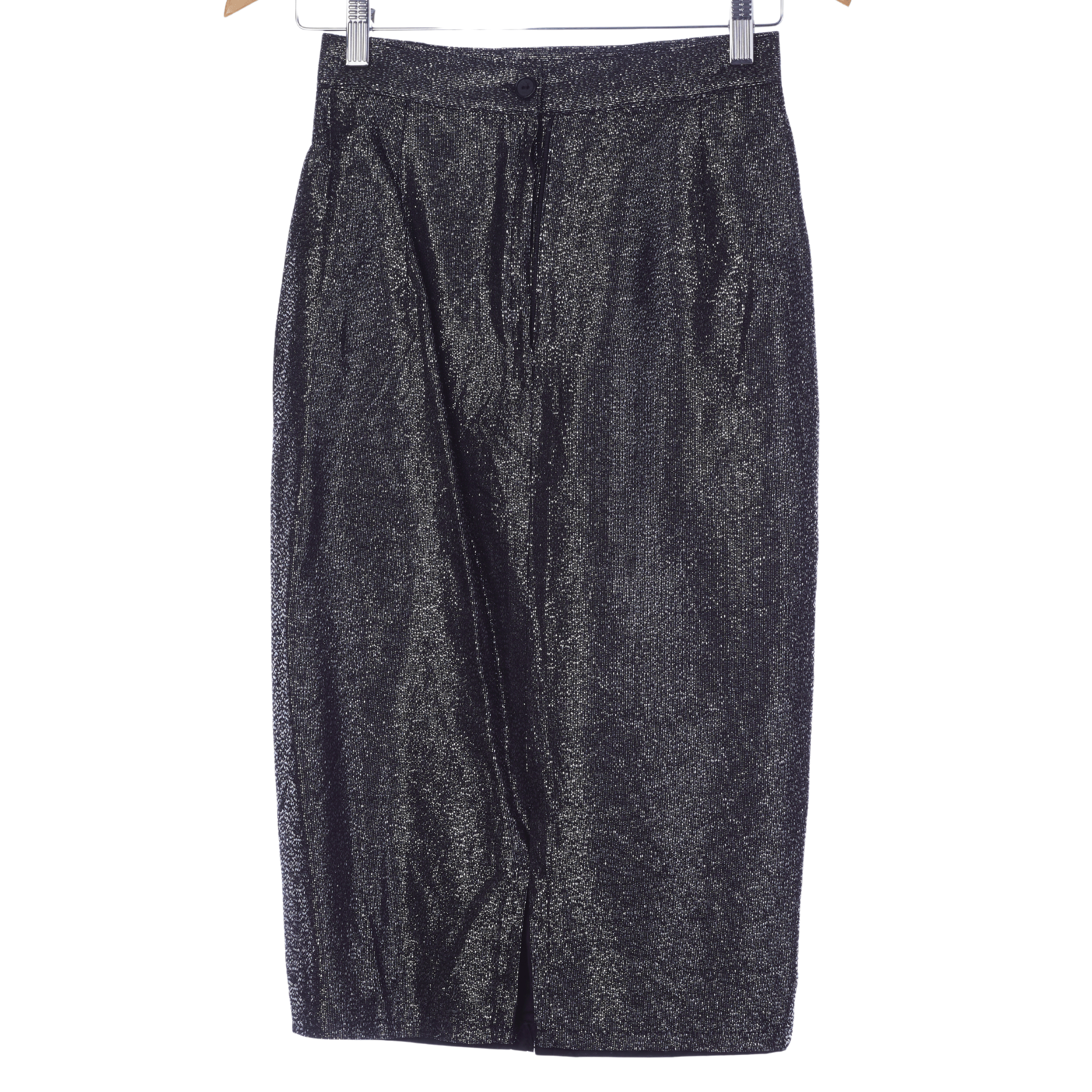 Gorgeous Unbranded Vintage Lurex Skirt Dark Silver Mettalic. UK Size 8. Labelled originally as a UK 12 but with a 65cm waist this is a modern UK size 8.