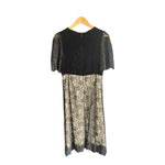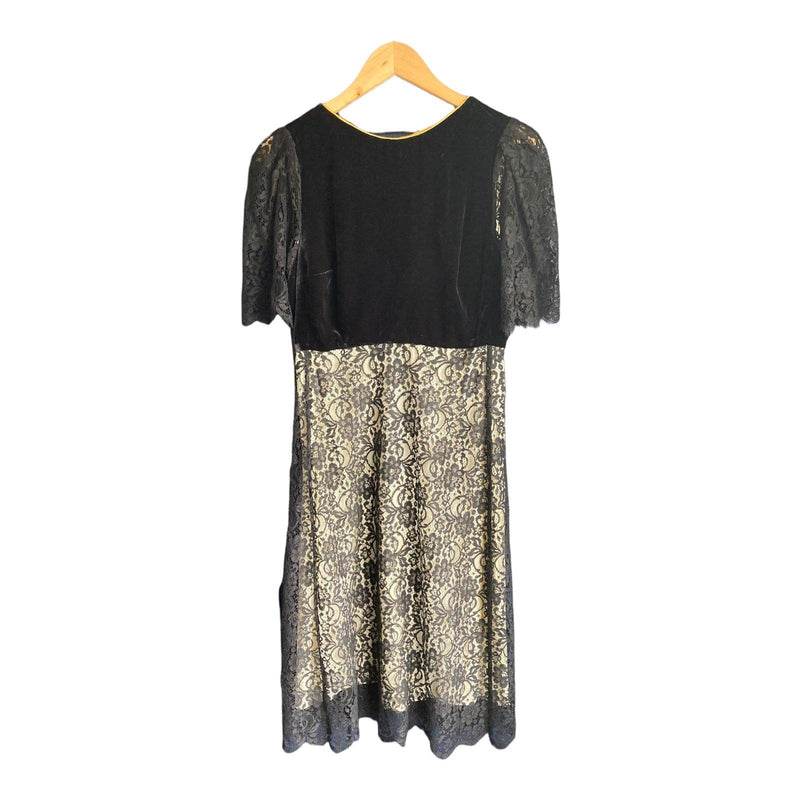 Libelula Black Short Sleeved Dress UK Size 12. Stunning silk lined dress with lace overlay. Silk is lemon coloured, main body is velvet feel. Zip to back. Excellent condition.