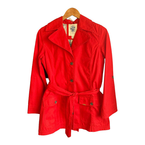 Hardob Wool Blend Red Multi-Coloured Long Sleeved Jacket UK Size 10. Stunning fully lined Jacket. Material is red based with purple, black and red woven fabric, bottom edge and buttons are red cotton. Cuffs can be folded back to show red lining. Super Stylish. Excellent condition.