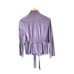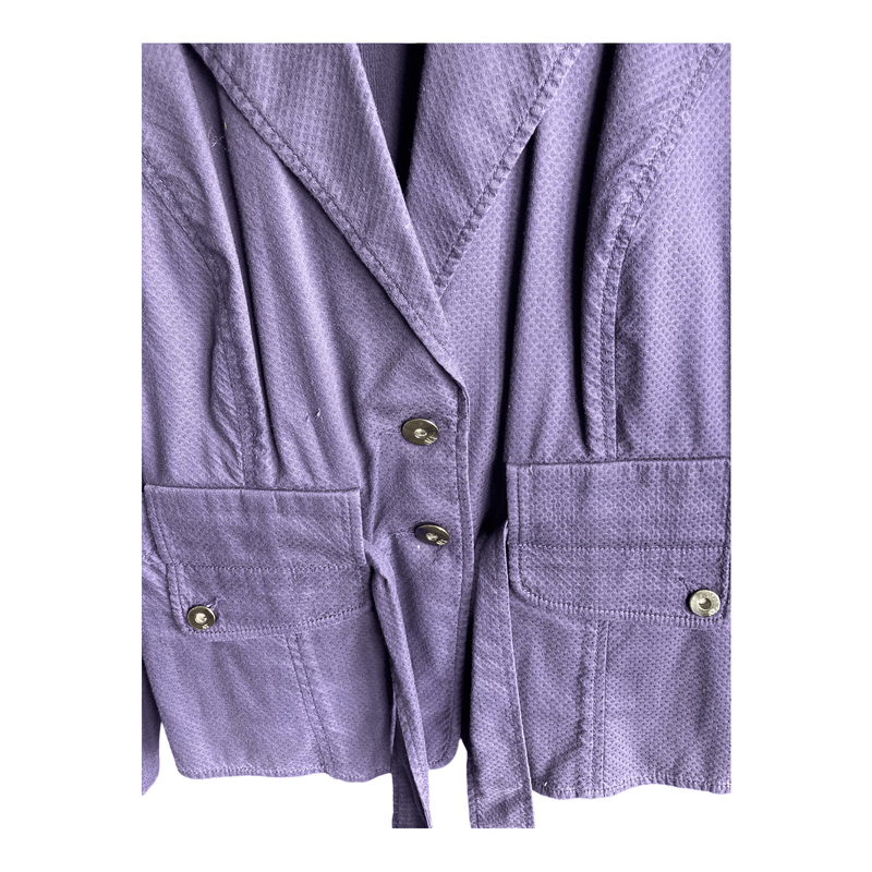 Armani Exchange Cotton Navy Casual Jacket UK Size 14. Lovely stylish jacket with feature studs and buttons. Mandarin collar with tie belt and pockets to front. Measurements are 39" bust and 31" waist which is a UK 14 - label states large. Excellent condition.