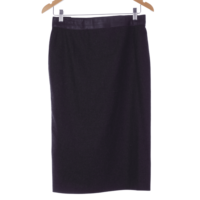 Gorgeous Dolce & Gabbana Grey Wool Skirt with Leather Detail UK Size 10. Press Stud fastening.