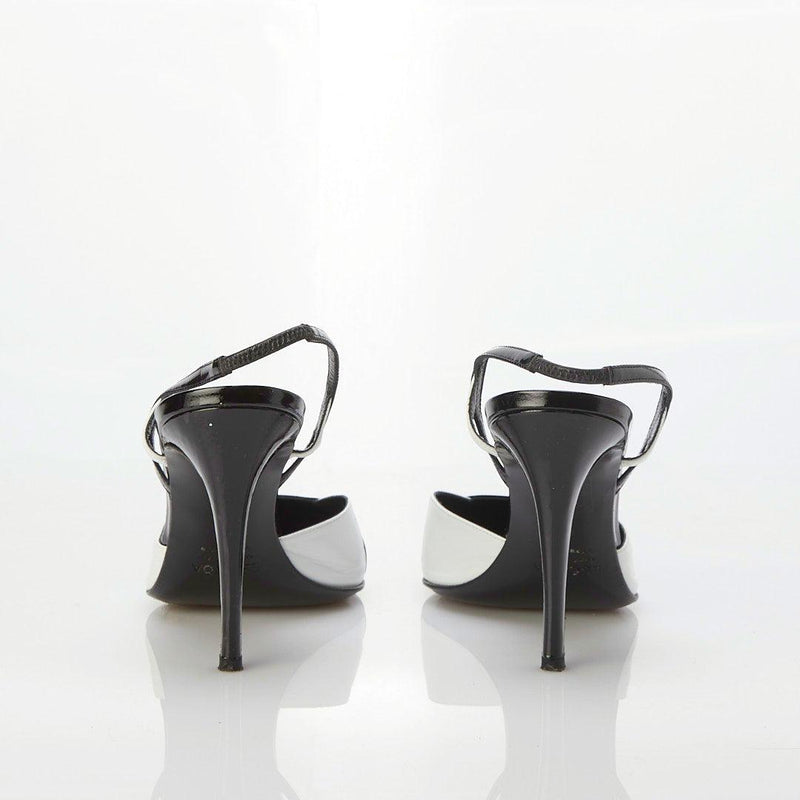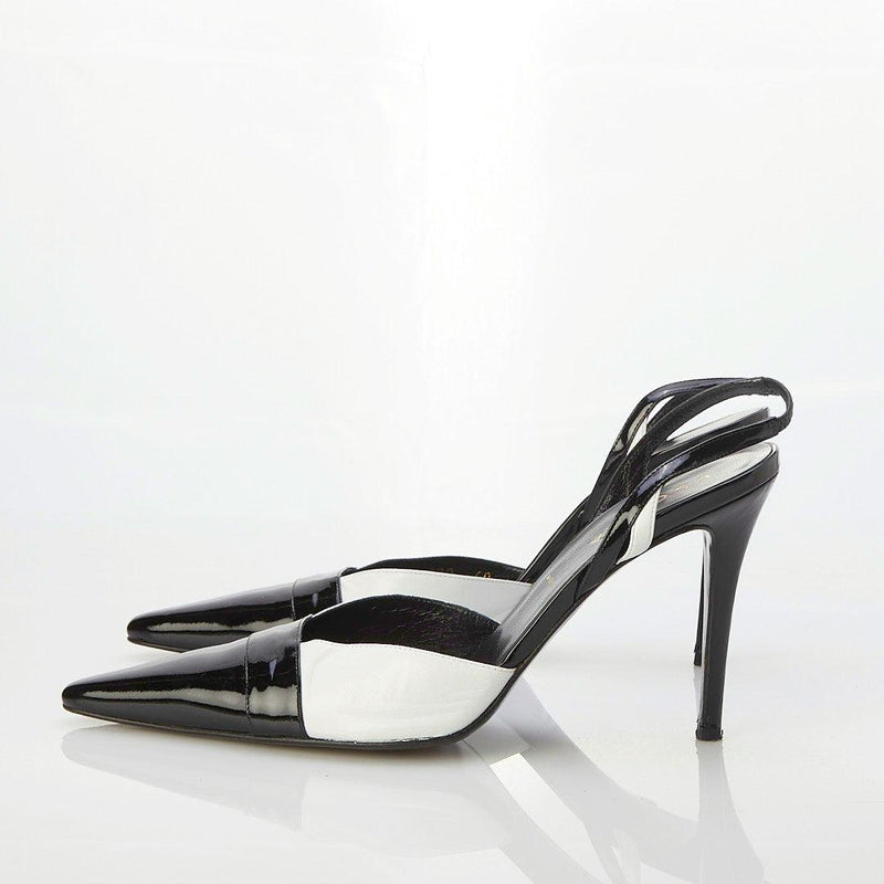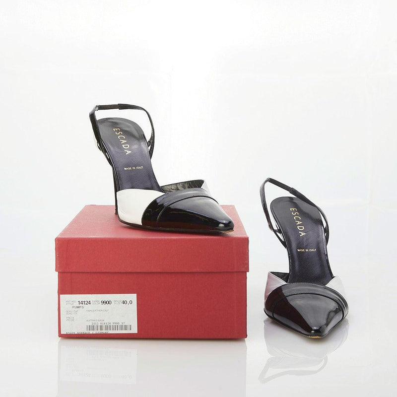 Escada Patent Leather Slingback Shoe UK Size 7. Stunning Italian shoe, very elegant, main body is white leather with black patent toe and heel to strap at back. EU size 40, heel is slender and 4 inches. Excellent condition.