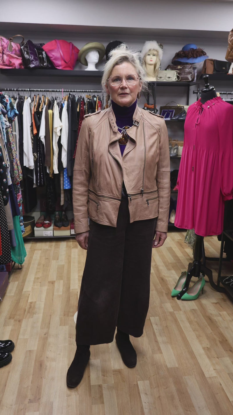 Mint Velvet Leather Biker Jacket Taupe UK 14/16