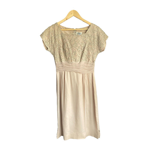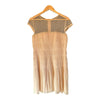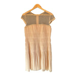 Philosophy Di Alberta Ferretti Nude Cap Sleeveless Dress UK Size 12. Stunning Fully lined cocktail dress. Material unknown, crepe look and feel. Netting from neck to bust line, feature edging. Body is boned and fully lined, bottom of the dress is fully pleated. Excellent condition.