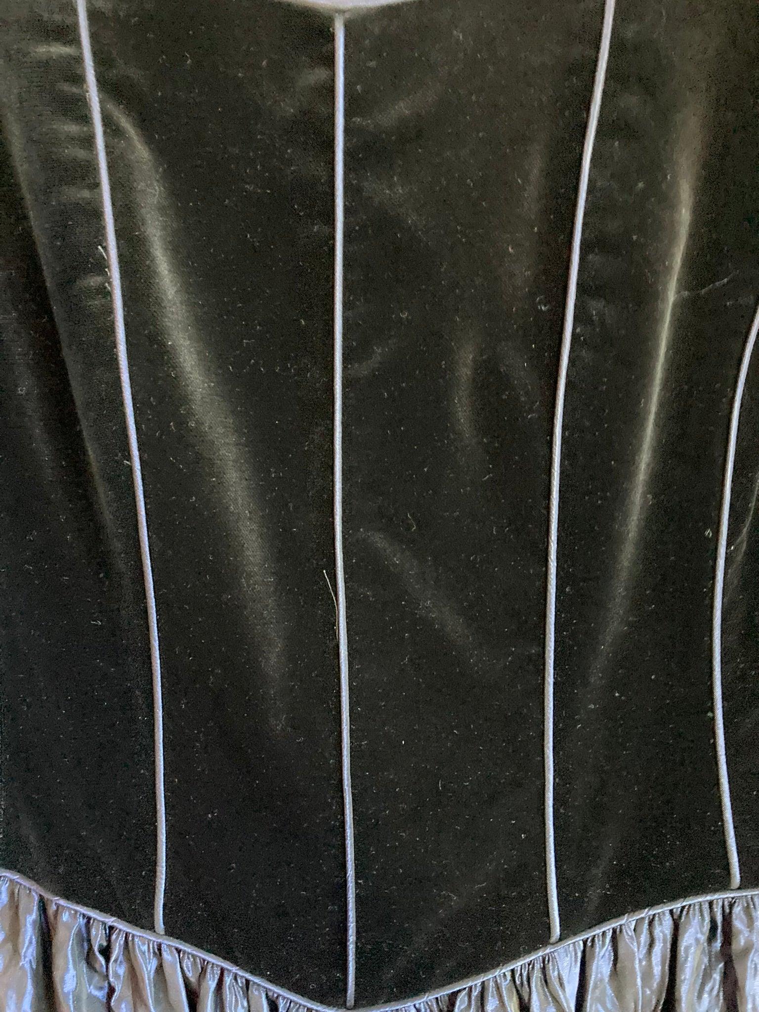 Laura Ashley Blue Short Sleeved Occasion Dress UK Size 14. Beautiful vintage 80's style dress, taffeta full skirt with velvet bodice which fastens to the back with small covered buttons also has concealed zip to side for ease of access. Excellent condition