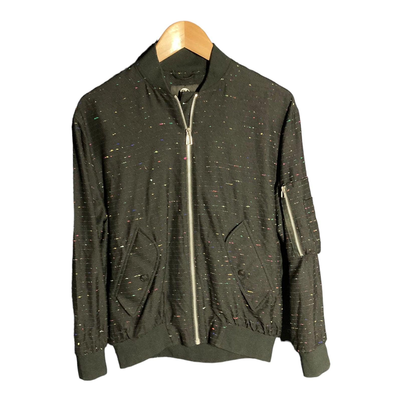 Paul Smith Black Multi Flecked Long Sleeved Jacket UK Size 16. Stunning bomber style jacket with knitted collar and cuffs. Fully lined, Italian made, material is unknown, feels like cotton. Jacket measures 41" chest which is a UK Size 16. It is a blousoned bomber style so would fit a range of sizes. Feature silver zip to front and to utility pocket on arm. Very stylish. Excellent condition.
