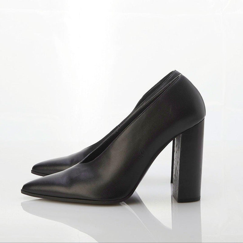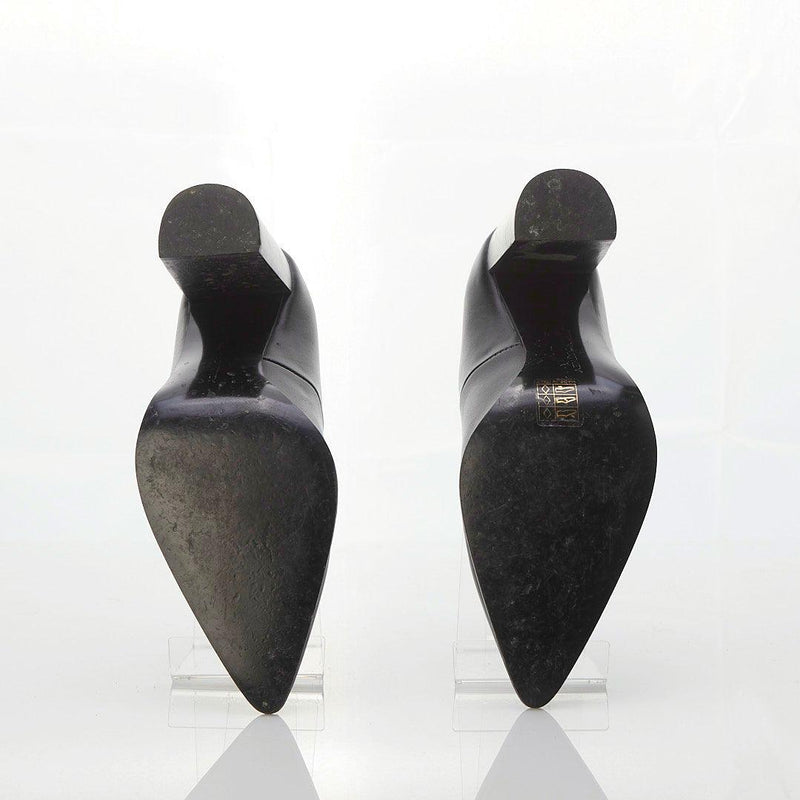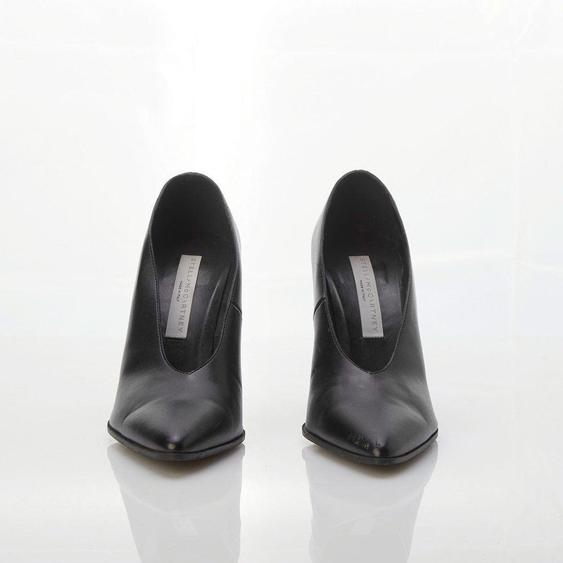 Stella McCartney Vegan Leather Black Court Shoe UK Size 4.5. Classic court shoe with a 'Stella' twist. Pointed front and opening of shoe. Heel is block and 4 inches, Italian made, excellent condition.
