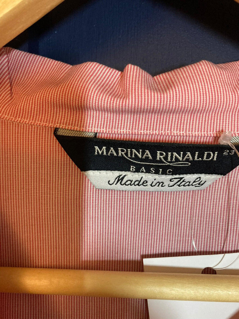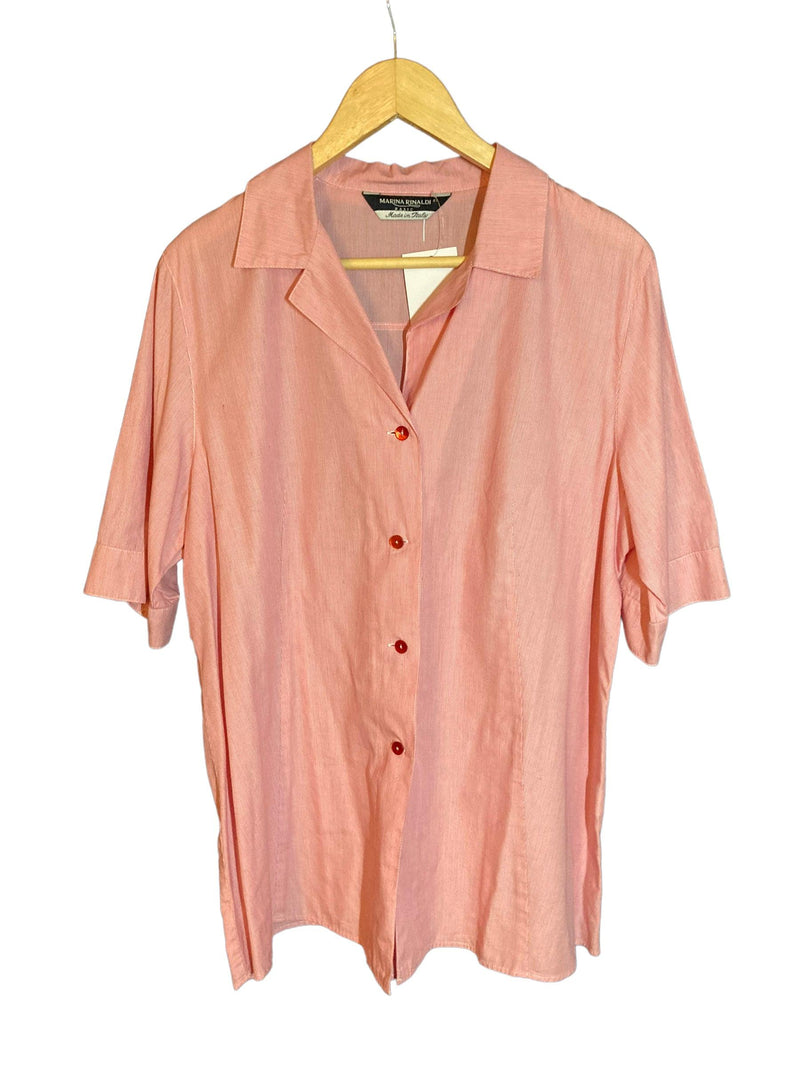 Marina Rinaldi Cotton Red & White striped Short Sleeved Shirt UK Size Large. Lovely open necked finely stripped shirt. It measures chest and waist 48 inches. Excellent Condition.