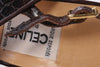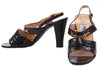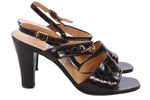 A stunning pair of Celine brown leather sandals. Gold buckle details on the strap, moc croc textured leather.