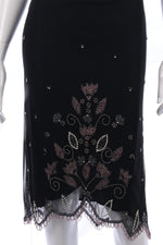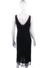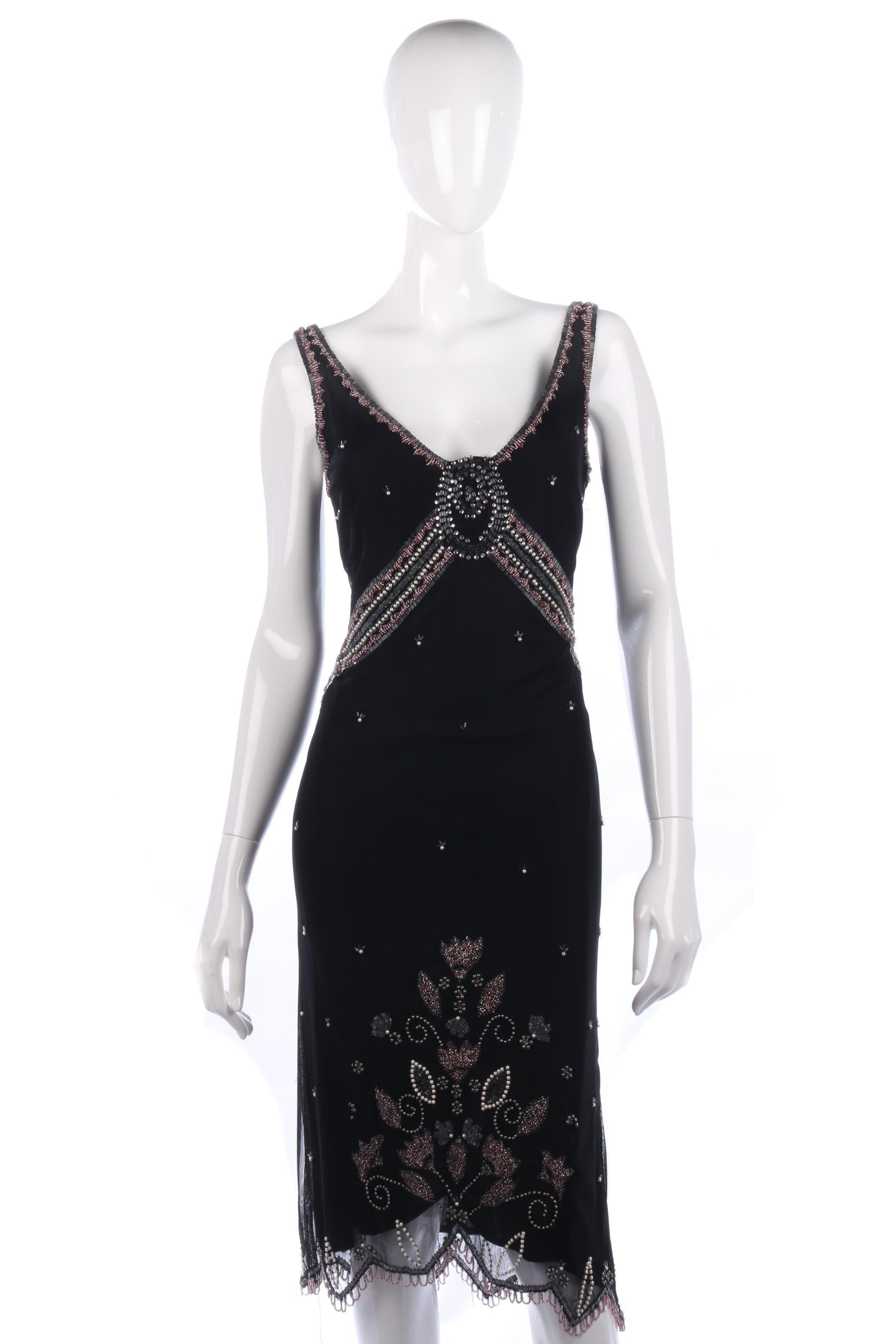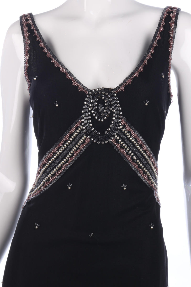 A lovely black dress with pink and silver beaded details around the neckline and hem. A great party dress.