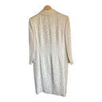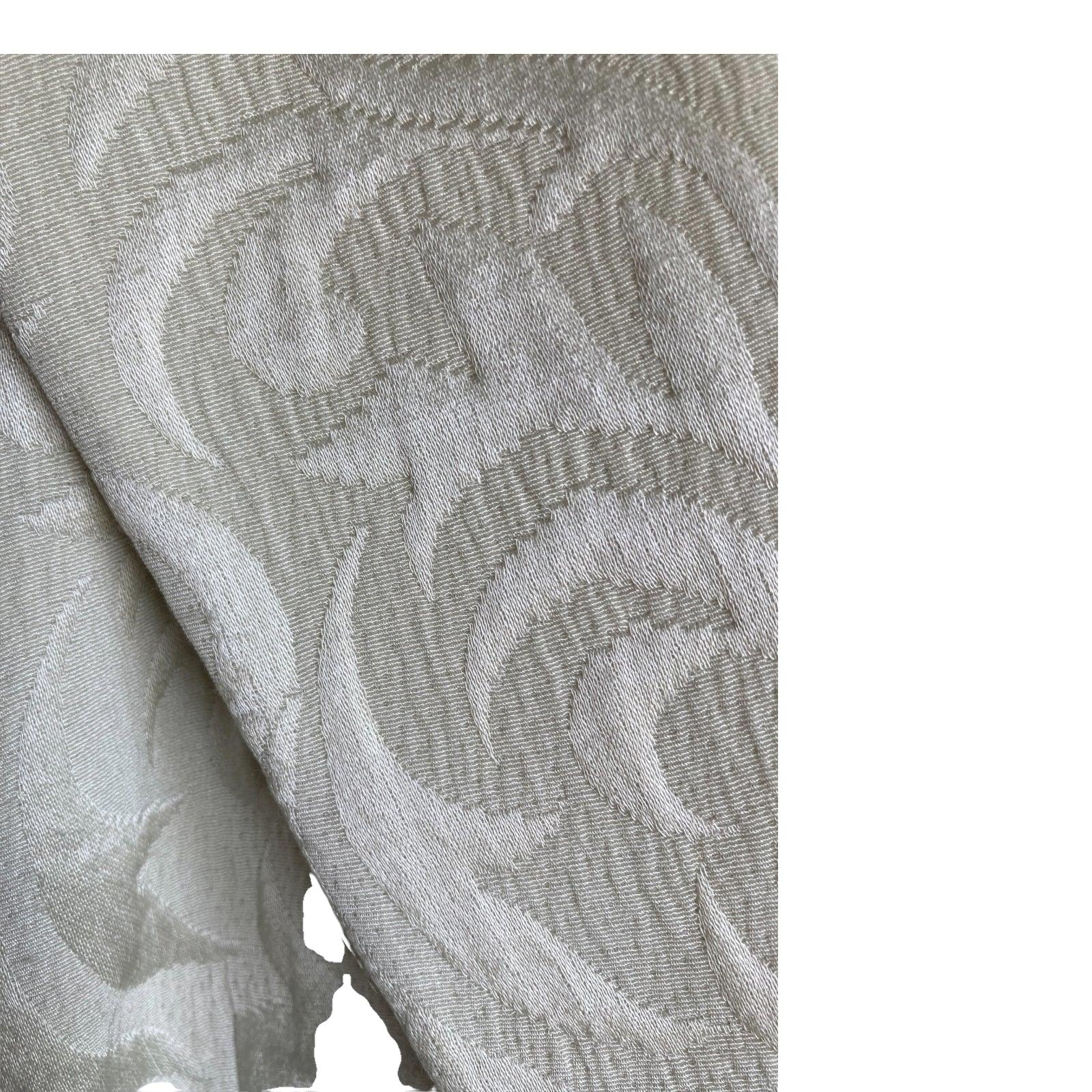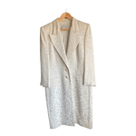 Frank Usher Pale Green Long Sleeved Coat UK Size 14. Beautiful embossed material, looks pale green in some lights and cream in others. Classic shape 2 buttons to the front with horizontal pockets which are sealed. Excellent condition.