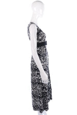 A lovely black and white patterned dress with black belt and zip fastening at the back.