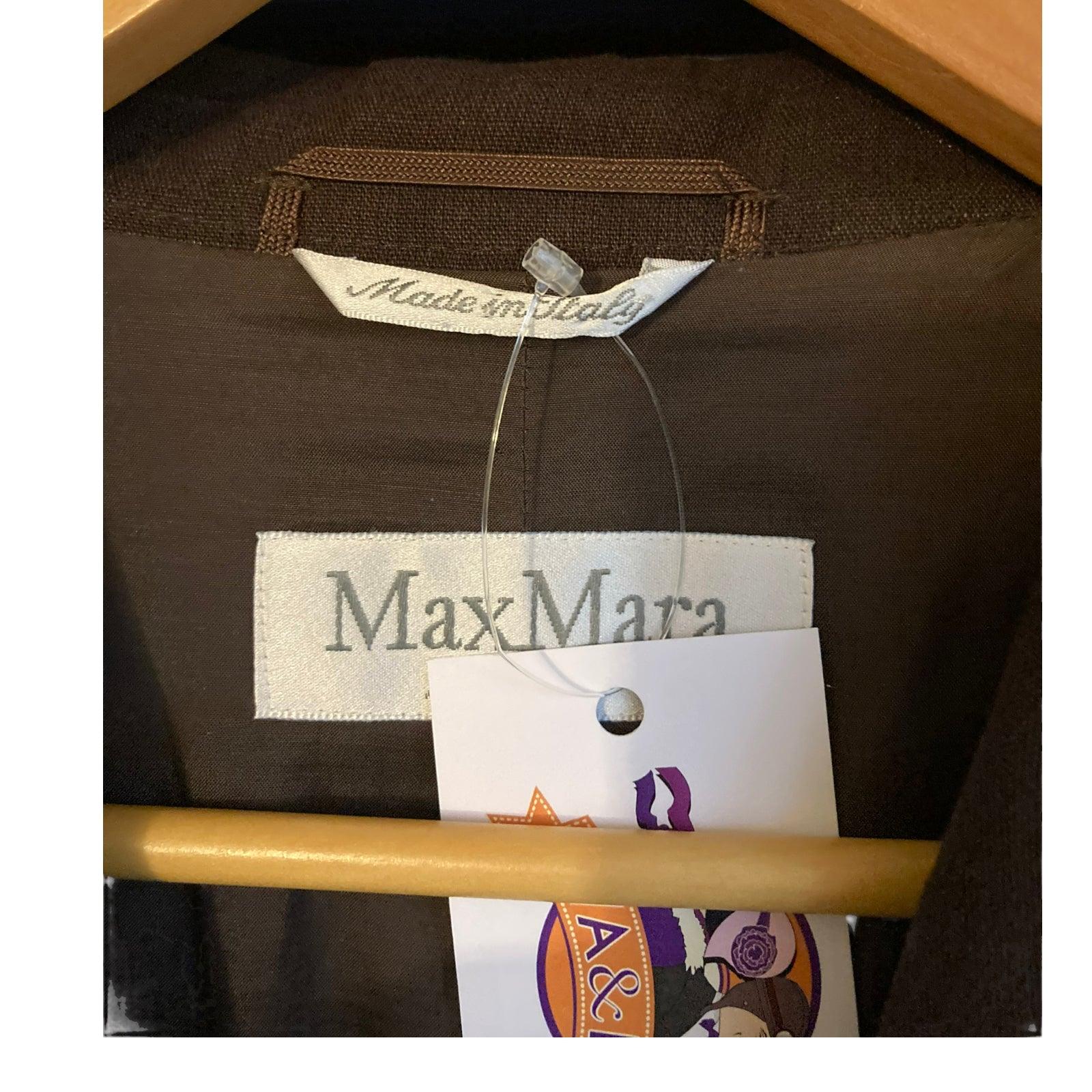 MaxMara Linen Brown Full Length Sleeve Jacket UK Size 12. Stylish single button open collared jacket with feature tie belt. Belt could be tied to the front or the back to give a nipped in waist look. Cuffs have a slight split and can be folded back. Lovely jacket in excellent condition.