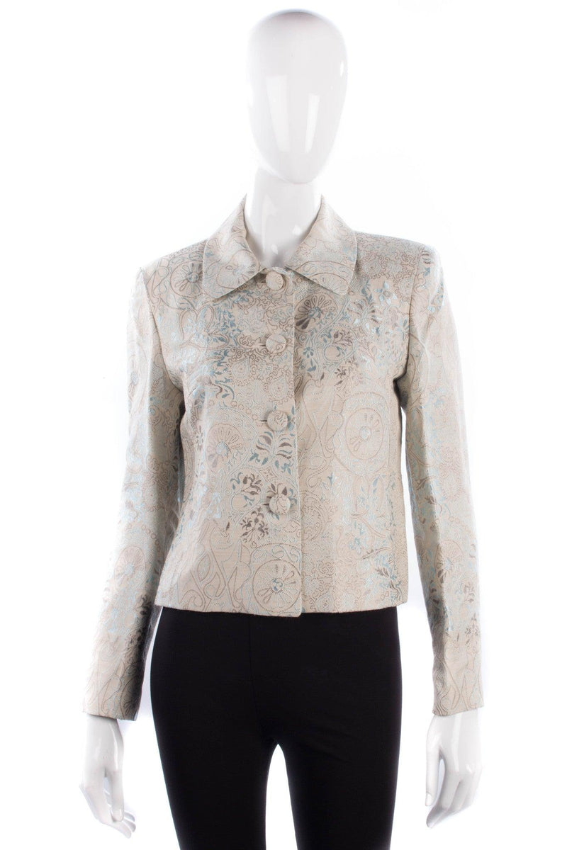 Lovely detailed jacket with blue and beige embroidery. Fully lined with covered button details, size 12.