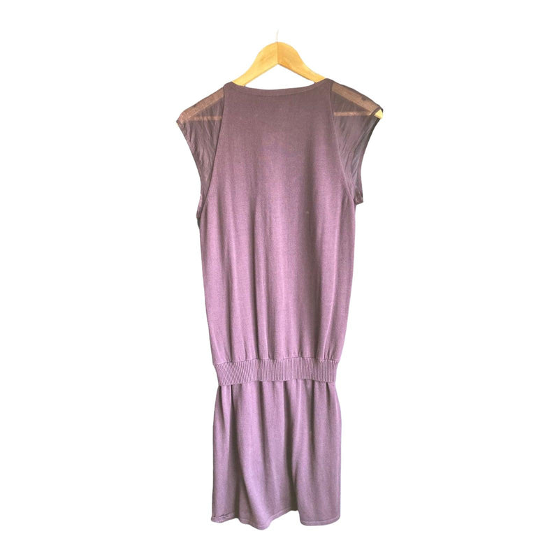 Vanessa Bruno Cotton Purple Capped Sleeve Dress UK Size 8/10. Fine knit, dropped waisted small buttons to front. Cap sleeve is sheer. Excelllent condition.