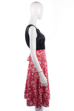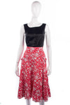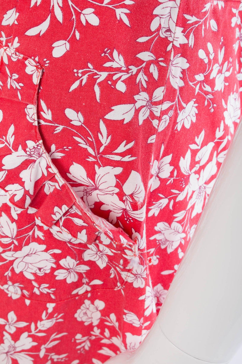 Lovely A-line cotton red and white vintage skirt. Pretty floral pattern with frilled details at the pockets.  No Size label but estimated a UK Size 10/12