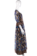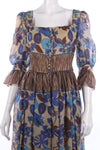 A gorgeous Susan Small dress with blue and brown colours. A lovely shaped neckline with zip fastening down the front with false buttons. Lovely frills on the sleeves.