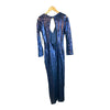 What A Girl Wants Navy Sequin Full Length Long Sleeved Dress UK Size 12. Simply stunning occasion dress, V neck with backless feature. Sexy split to front and zip fastening to back. Polyester with eye-catching sequence. Excellent Condition.